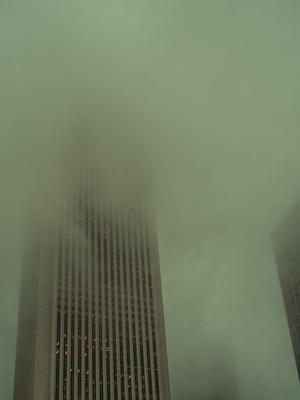 This photograph shows an office building covered in fog that rolled in from Lake Michigan in Chicago, Illinois. This was taken using the LUMIX G9.