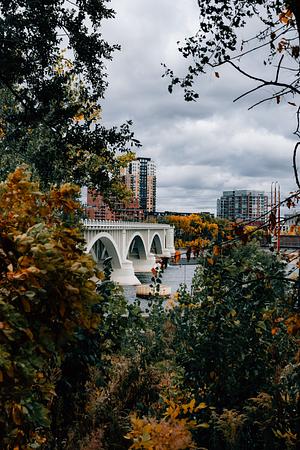 This is the 3rd Avenue bridge surrounded by a beautiful fall frame in Minneapolis, Minnesota. This photograph was captured using a LUIMIX S5II