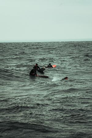 This photograph captures a group of surfers having a good time in Lake Superior. Photo was taken using a LUMIX S5II.