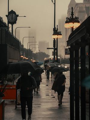 This photo captures strangers going through their day in a rainy Chicago.